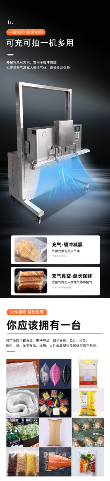 大尺寸、重重量、異形產品或多品類小批量生產的真空包裝需求,以下是具體場景分類。